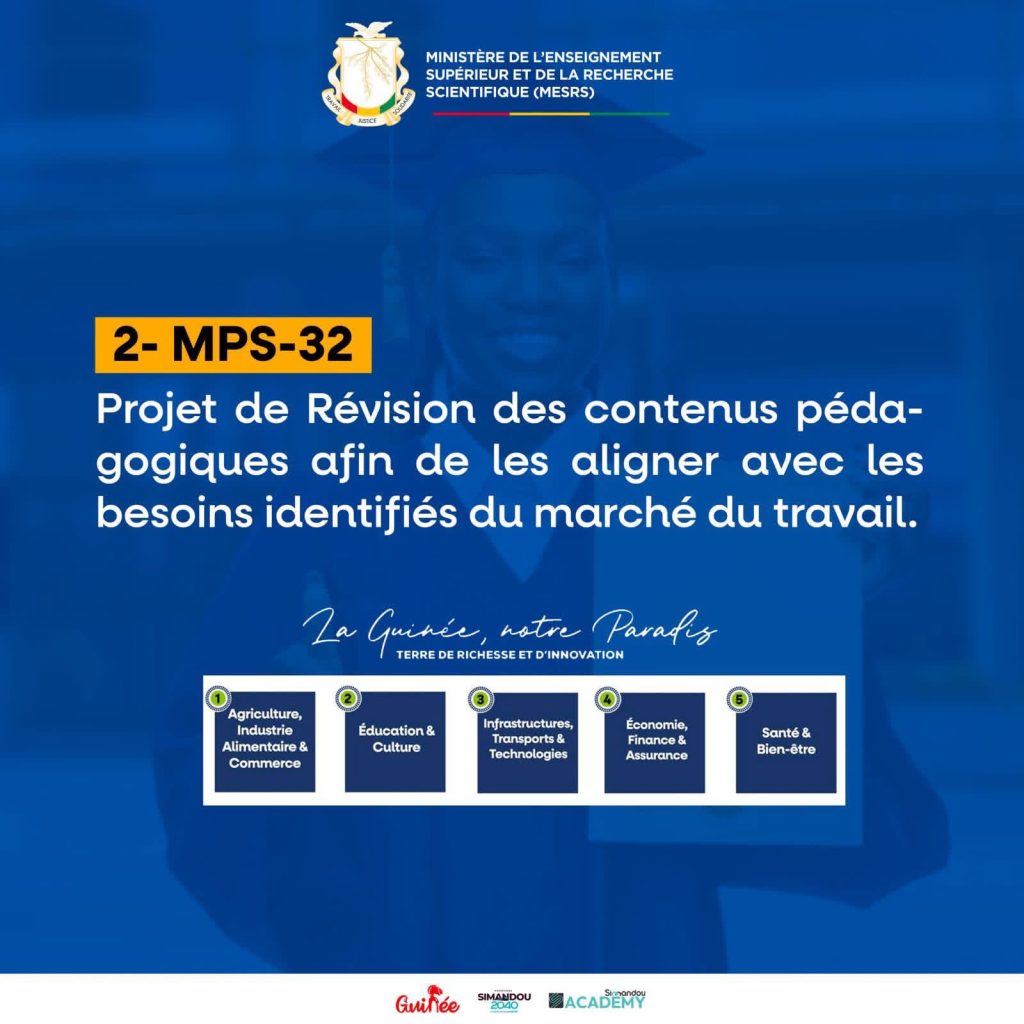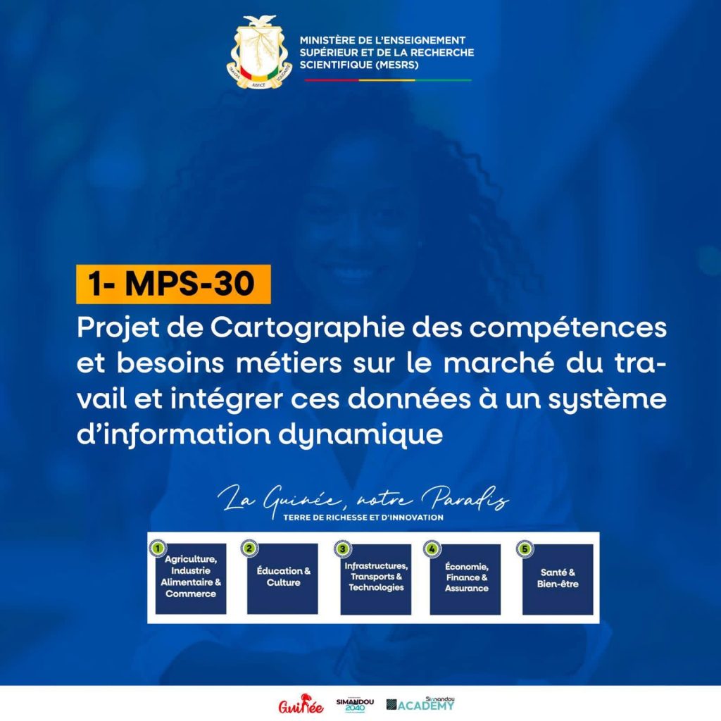 « Le MPS30 va doter la Guinée d’un véritable écosystème numérique de formation, d’information sur les formations et l’emploi. Les plateformes existantes, parce que nous ne partons pas de nulle part, de zéro, seront enrichies de modules de cartographie fin de tous les programmes, de toutes les données sur les débouchés professionnels et de tous les besoins métiers par région. Mais surtout, le MPS30 va créer l’Observatoire national de l’insertion des diplômés, l’ONITA.